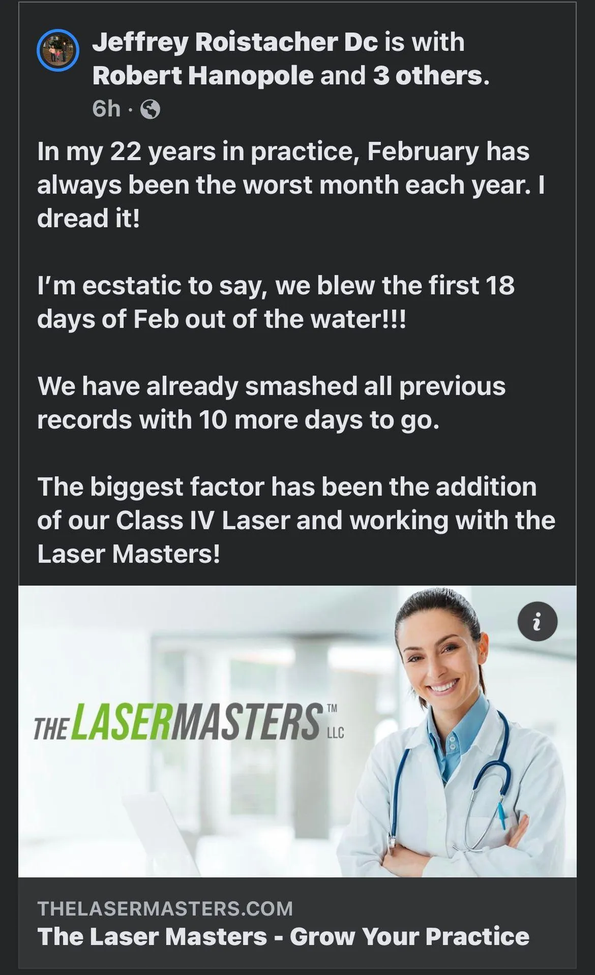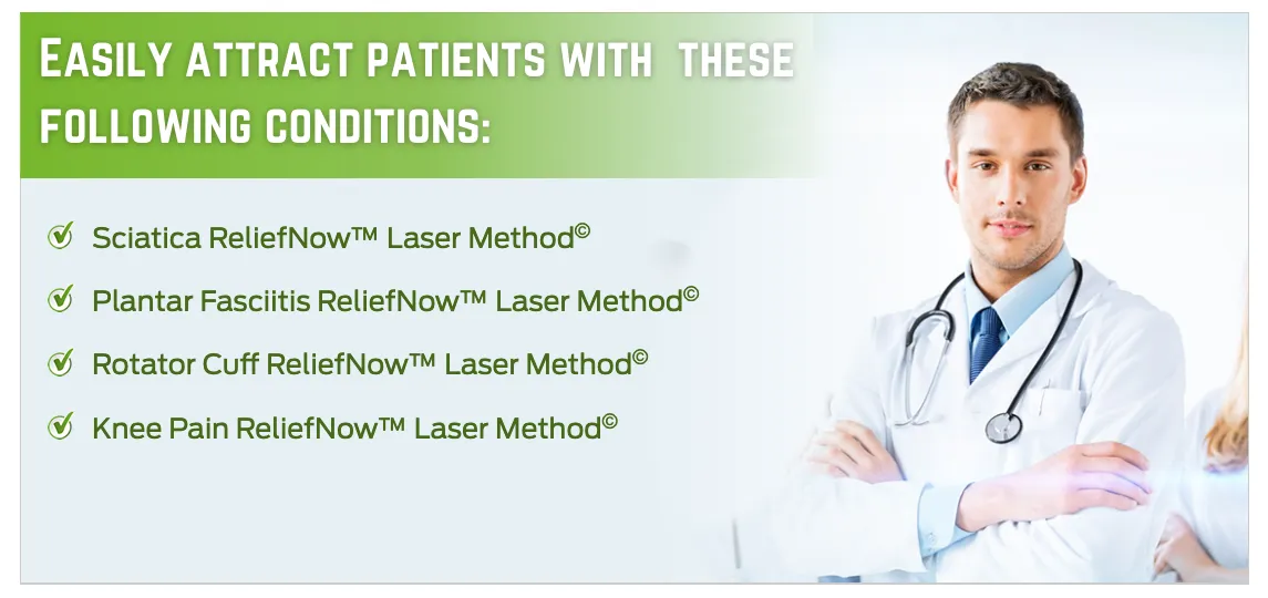 When you offer these new treatments, you are opening yourself up to a new world of patients – those that previously never would have thought to seek out your services for their unique conditions. As a ReliefNow Laser Center, you are going to position yourself as the leader of pain technology in your market.